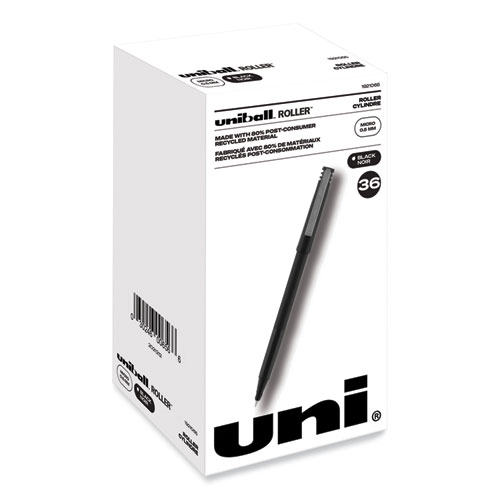 Stock your office, home or classroom with Roller Rollerball Stick Pens from uni-ball featuring strong, long lasting tips. These rollerball pens deliver the silky-smooth glide of a fountain pen without smudging for effortless writing. Roller pens produce neat and precise lines for intricate writing, making it easy to create super fine details in your drawings and diagrams. Capped roller pens are useful for a variety of tasks from note taking to signing checks and legal documents to uniquely embellishing fun and creative writing projects. Innovative uni Super Ink technology forms a strong bond with the paper, protecting from water, fading and fraud. Made from recycled material.