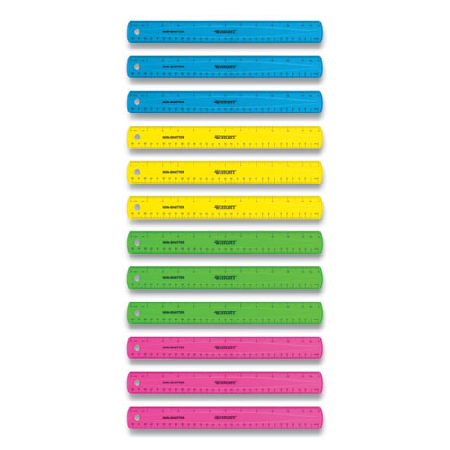 Non-Shatter Flexible Ruler, Standard/metric, 12" (30 Cm) Long, Plastic, Assorted Translucent Colors, 12/box