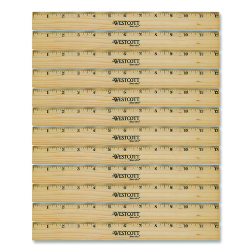 Beveled Wood Ruler, Standard, 12" Long, Natural Hardwood, 12/pack
