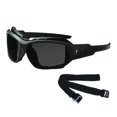 Skullerz LOKI Anti-Scratch/Anti-Fog Convert Safety Spoggles, Strap, Matte Black Frame,Smoke Poly Lens, Ships in 1-3 Bus Days