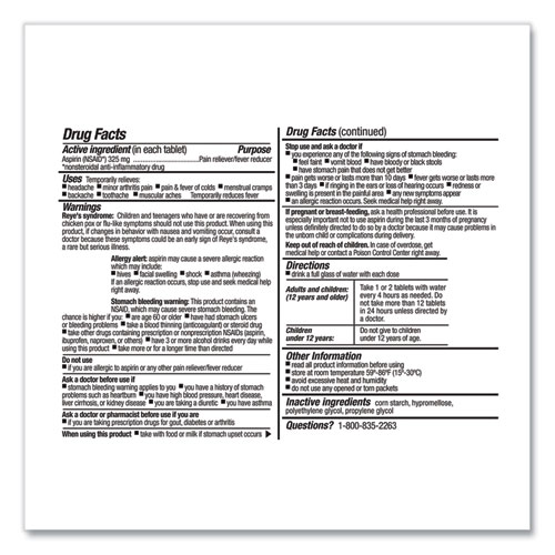 SmartCompliance Aspirin Refill, 2/Packet, 10 Packets/Box