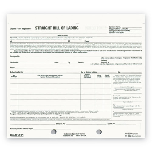 Snap-A-Way Bill of Lading, Short Form, Three-Part Carbonless, 7 x 8.5, 250 Forms Total