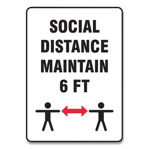 Social Distance Signs, Wall, 10 X 14, "social Distance Maintain 6 Ft", 2 Humans/arrows, White, 10/pack