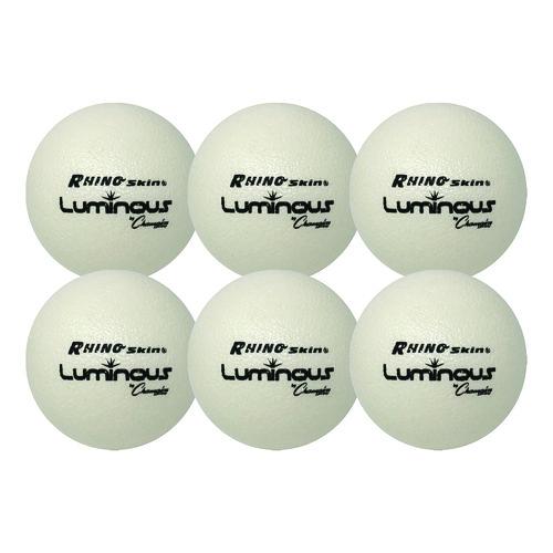 Rhino Skin Luminous Dodgeball Set, 6.3" Diameter, Luminous White/Blue, 6/Set