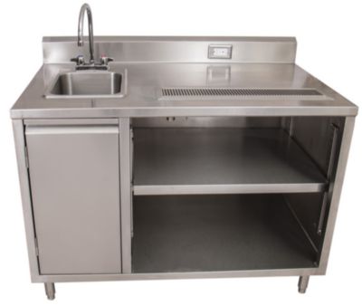 Stainless Steel Beverage Table with Left Sink, Rectangular, 30" x 72" x 41.5", Silver, Ships in 4-6 Business Days
