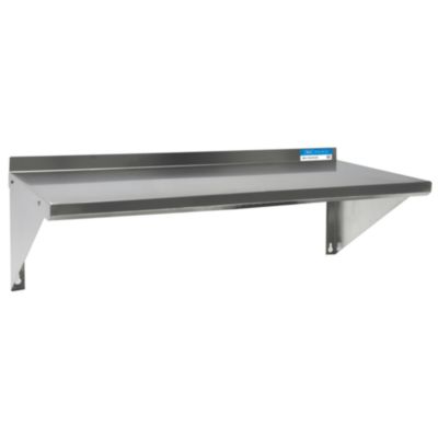 The Economy Overshelf is a wall-mounted shelving solution constructed from durable 18-gauge T-430 stainless steel. It features a 1.5" rear turn-up for added stability and is supported by two 8" angle supports, providing a robust and space-efficient storage option.