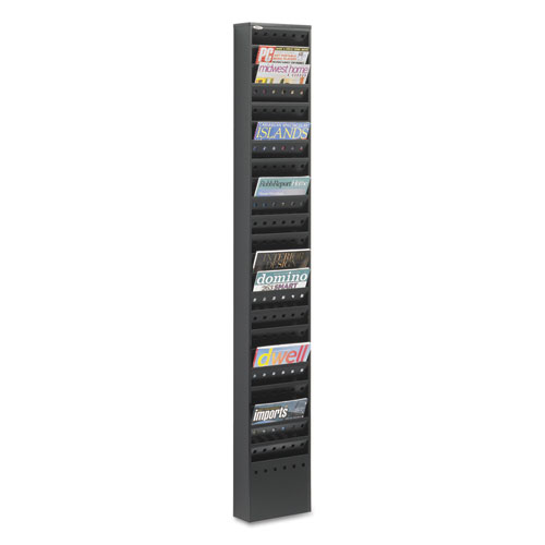 Steel Magazine Rack, 23 Compartments, 10w X 4d X 65.5h, Black