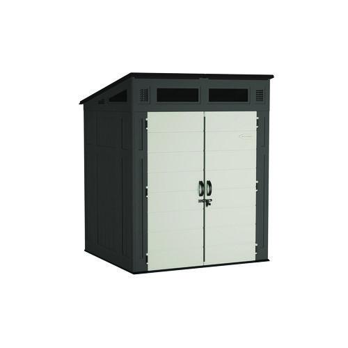 Modernist Storage Shed, 200 cu ft, 6 ft 2.5" x 5 ft 8.25" x 7 ft 5.75", Peppercorn/Black/Passive