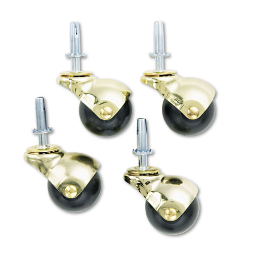 Superball Casters with Hooded Caster Housing, Type W Stem, 2" Soft Vinyl Wheel, Bright Brass/Black, 4/Set