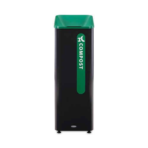 Rubbermaid Commercial Products Sustain Containers are a decorative and adaptable recycling solution made to improve your facility's sustainability compliance. Modular system allows the container stations to be customized and grow with each recycling program's needs. Restrictive waste stream openings and colored labels provide easy visual cues for patrons, making recycling easier and improving compliance with growing regulations.
