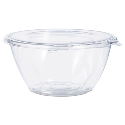TamperAlertâ„¢ hinge protrudes outward when torn, alerting the customer that the container has been opened. Hinge remains attached to the container, meaning no loose plastic pieces and therefore no littering. MicroTrimâ„¢ edge contributes to tamper-resistance by inhibiting the ability to lift up the lid from the base without tearing the hinge. 360 degree leak-resistant perimeter seal completely seals entire tray for maximum freshness and to prevent leaks. Recessed stacking platform provides greater stability of merchandising displays. Offset opening tabs and lift and hold embossing makes SafeSealâ„¢ bowls easier to open. Crystal clear container with minimal sidewall ribbing.