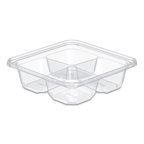 TamperGuard Snack Boxes, 4-Compartment, 6.3 x 6.3 x 1.8, Clear, Plastic, 300/Carton