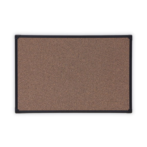 Tech Cork Board, 36 x 24, Brown Surface, Black Plastic Frame
