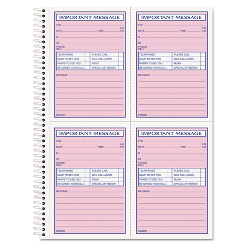 Telephone Message Book with Fax/Mobile Section, Two-Part Carbonless, 3.88 x 5.5, 4 Forms/Sheet, 200 Forms Total