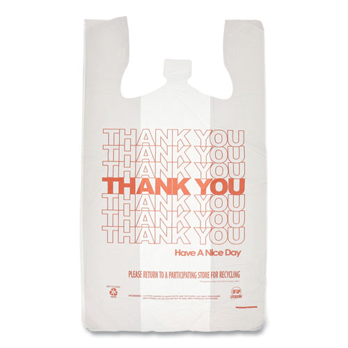 Thank you bags are designed for use in grocery stores, retail shops and convenience stores. Durable, consistent quality HDPE barrel thank you bag. Show your customers your appreciation with thank-you messaging on the bag.