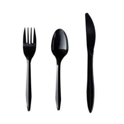 Three-Piece Cutlery Kit, Fork/Knife/Teaspoon, Polypropylene, Black, 250/Carton