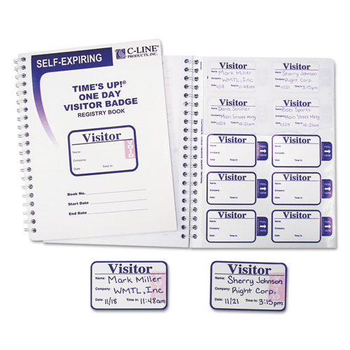Time'S Up Self-Expiring Visitor Badges With Registry Log, 3 X 2, White, 150 Badges/Box