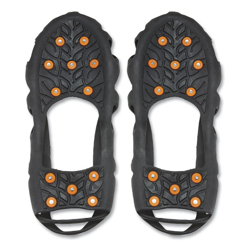 The TREX 6304 Step-In Ice Cleats are lightweight ice grips for boots and shoes that provide tenacious traction and extra stability on ice and snow. Stretchable one-piece design offers grip to prevent slip and fall injuries on the ice. Contoured step-in 3D design easily wraps around boots and shoes for a superior fit. These ice grippers feature 12 rugged carbon steel cleats on the ball and heel of foot for grip on slippery terrain. Available in multiple sizes and will fit over any style of boot or shoe for traction and stability during winter work or other winter outdoor activities. Tested to be flexible in temperatures down to -40°F (-40°C), the contoured 3D design allows you to step into these ice traction cleats for fast and easy on/off. TREX Ice Traction should fit snugly on your boot or shoe. Stretchy, one-piece design means no tightening or adjustments needed. Use your shoe/boot size to determine the approximate size.