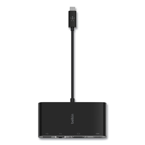 Simplify your multimedia and connect everything you need through one compact adapter. Compatible with devices that have a video-enabled USB-C® port, it's the perfect tool for sharing your laptop or tablet screen with a crowd. The adapter supports Gigabit Ethernet, USB-A 3.0, VGA, and 4K HDMI, making it ideal for meetings, classrooms, and on-the-go presentations. The simple plug-and-play technology is compatible with Mac and Windows laptops and other USB-C devices.