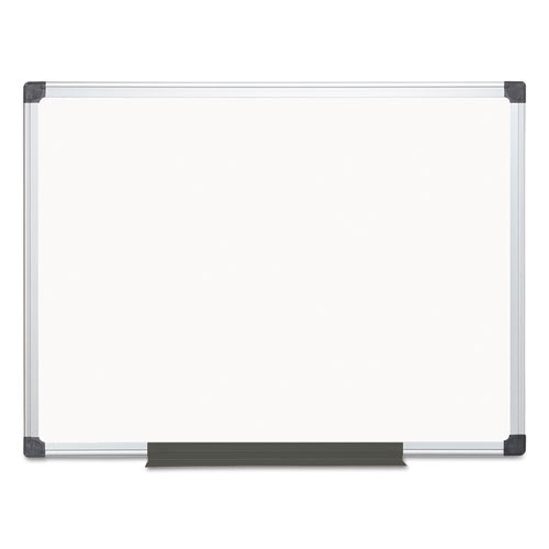The Maya Magnetic Steel Dry-erase Board features a durable whiteboard surface and high-quality appearance through years of frequent use. Magnetic surface allows you to instantly post messages or attach your magnetic accessories. The professional Maya aluminum frame includes a four-corner mounting system that can be positioned either vertically or horizontally to provide versatility when reconfiguring an office or where wall space is limited. The adjustable pen tray offers a convenient way to keep your writing utensils within quick reach. This dry-erase board is perfect for classrooms, offices, training environments, meeting rooms and more.