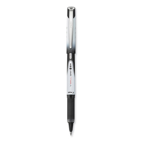 Vball Grip Liquid Ink Roller Ball Pen, Stick, Extra-Fine 0.5 Mm, Black Ink, Black/white Barrel, Dozen