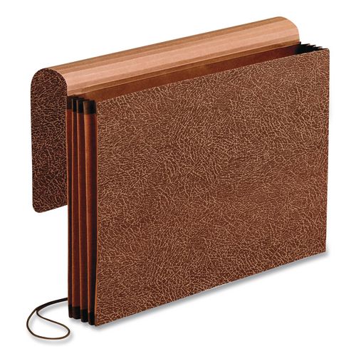 Premium Reinforced Expanding Wallet, 3.5" Expansion, 1 Section, Elastic Cord Closure, Legal Size, Red Fiber, 5/Box