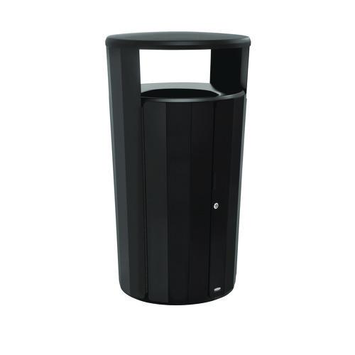 RESIST Round Waste Container, 45 gal, Metal, Textured Black/Black Gloss