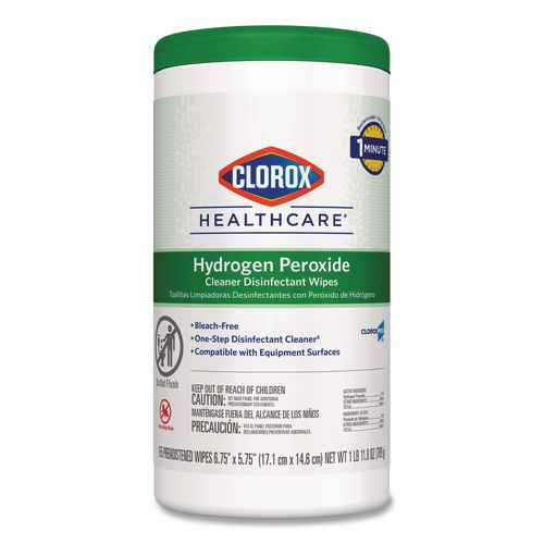 Hydrogen Peroxide Cleaner Disinfectant Wipes, 6.75 x 5.75, Unscented, 155 Wipes/Canister