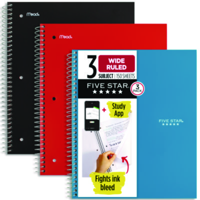 Lasts all year. Guaranteed! Durable, water-resistant poly covers protect your notes all year. Reinforced, tear-resistant divider pockets keep your loose sheets together. Spiral Lock® wire binding prevents coil snag, and high-quality paper provides excellent ink-bleed resistance. Easily inserts into any three-ring binder (sold separately). Scan, study and organize your notes with the Five Star Study App. Create instant flashcards and sync your notes to Google Drive to access them anywhere from any device.